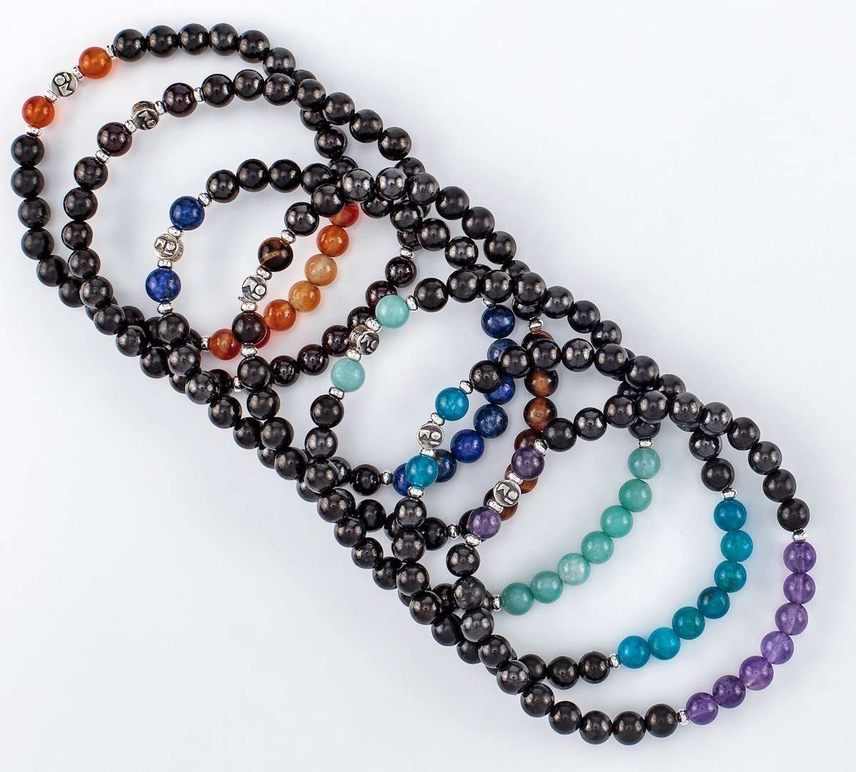 These 7 Sterling Silver Shungite wrist malas are made with 6mm beads and our signature sterling silver ŌM bead